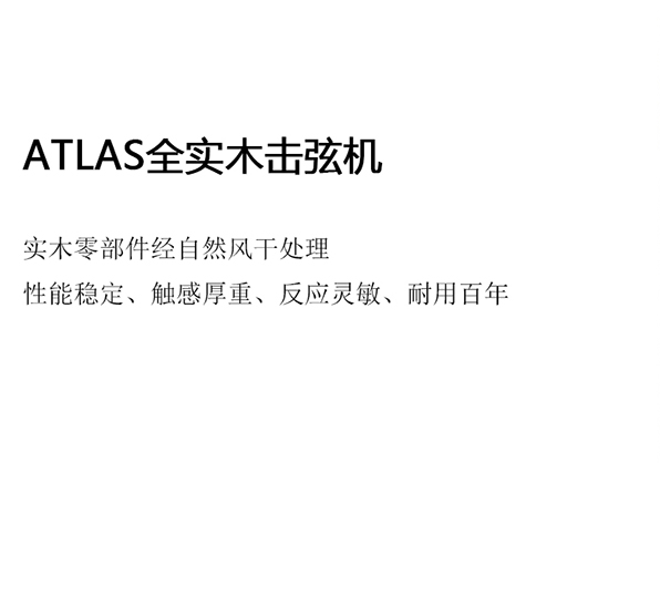 追求完美的音色,阿托拉斯在技术上精益求精 为了使音色有提高,也要对其工艺仔细研究,反复实验预期的效果。阿托拉斯的这种态度,是高尚的专业技能决定的。因此阿托拉斯这种独创的设计和制造方法令人放心。为了使钢琴具有绵延纯厚的音质,组装前完成音板弧度,画出其函数曲线图也是制造技术之一。阿托拉斯的所有产品都采用了这一欧洲传统技法。比其他公司的同类产品,低音部弦长大出6-8CM,尽最大可能使音色优美,清澈,形成了丰富的音量源泉,以达到接近三角琴的效果。例如:安装了准确弹奏的操作系统,比三角琴毫不逊色的踏脚机构。阿托拉斯独创的总体设计结构,采用高级榔头等,在阿托拉斯立式钢琴里,有接近三角琴的音质音量,同时体现出三角琴的弹奏感。